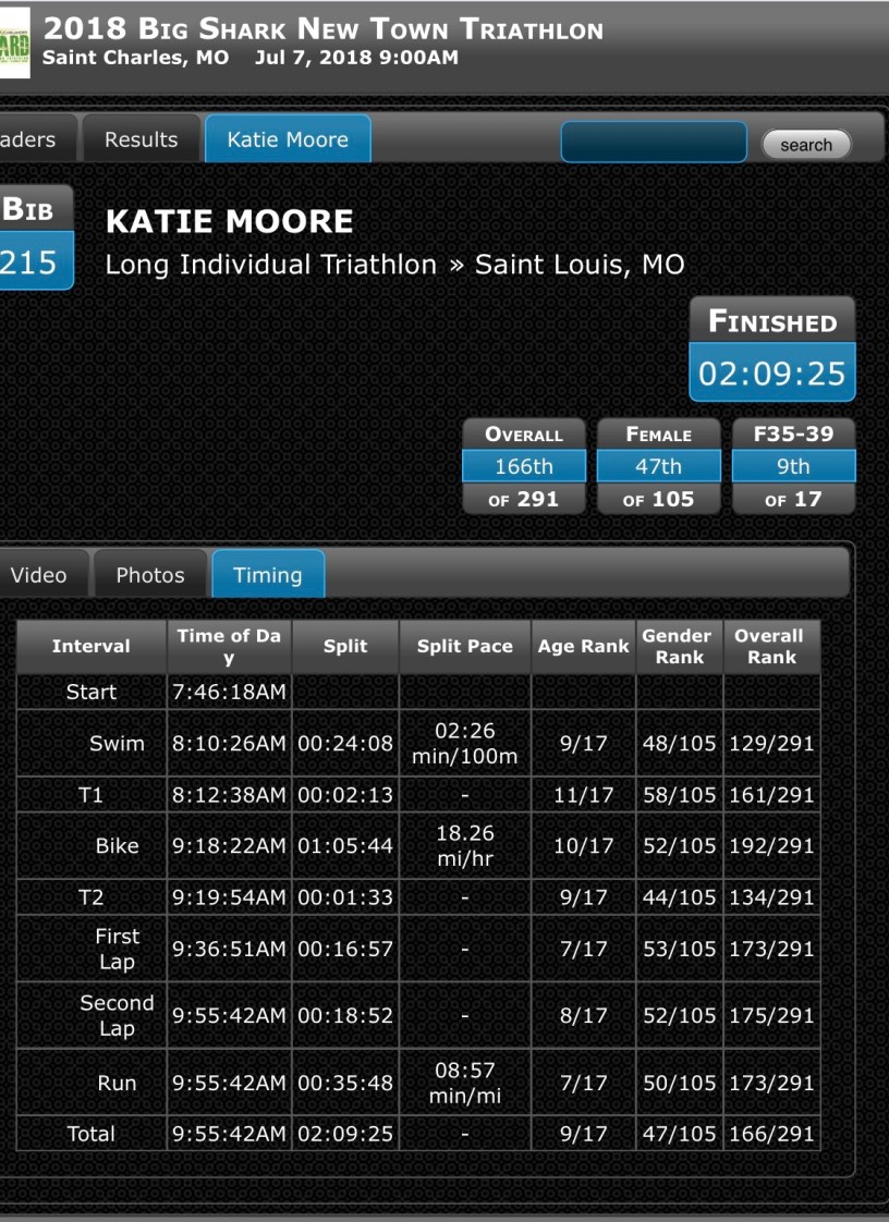I had my first outdoor triathlon this weekend of the season. I was pumped at first then on Saturday I got some potentially horrible news (more to come on this later on) that shifted my mindset, my attitude and my ambition. The triathlon was just shy of an Olympic distant tri. It was a .6 mile swim, 20 mile bike and a 4 mile run. I was originally bummed that this race wasn’t Olympic distance but after the fact, was super glad it wasn’t.