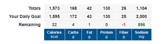 With JD on board with the diet and working out, I needed to modify what I was eating a bit so that we both can eat the same foods (different portions) so we weren’t making 8 different meals a day! Since my coach only gave me one day of meal prep for each week, I had to get creative and I will say I think I did a damn good job! She said its ok to be a little over in carbs (I am in my high carb week) and anything 5-10 over in fiber is ok as long as I hit my protein goals. Welp, Monday was the first day that I’ve come this close to hitting all my goals! We literally spent hours over the weekend planning out our week. This macro shiz is no joke!