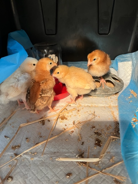 Remember in my prologue how I’m the master at complicating our lives? Well just let me tell you that JD is almost as good at it. We decided to get a few more chickens after we had lost so many however, we wanted adolescent birds. Yeah, they didn’t have any so we ended up with 4 baby chicks per JD’s suggestion. They are currently in my basement under a heat lamp. They sure are cute and with the number of eggs a day we both have to eat, we need like 20 more. LOL We won’t name them until they are older when we understand their personalities.