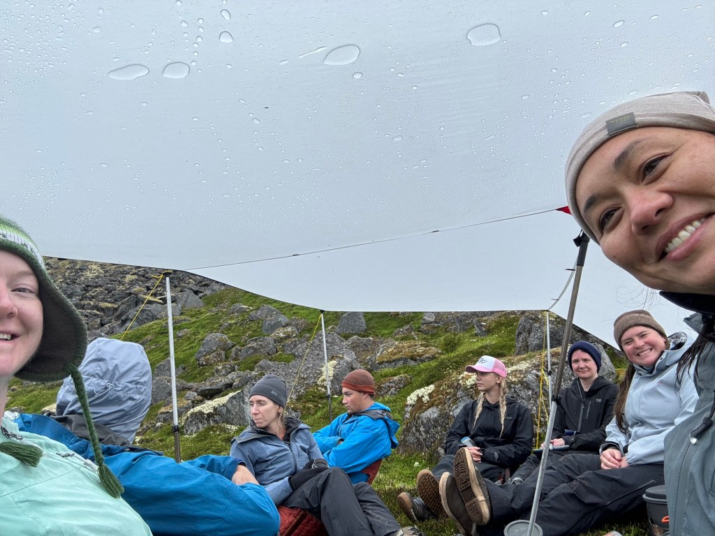 The kitchen was a bevy style shelter which was supported by the use of our trekking poles. We had hot drinks and chatted until dinner which was a spaghetti cheesy noodle with chicken and veggie dish. There was a lot of food which I couldn’t eat all of mine. We either had to consume the leftovers or pack it out as trash. Lucky for us, Aidan was our garbage disposal. He finished off Sydney, my and Brandi’s left overs on top of his own.