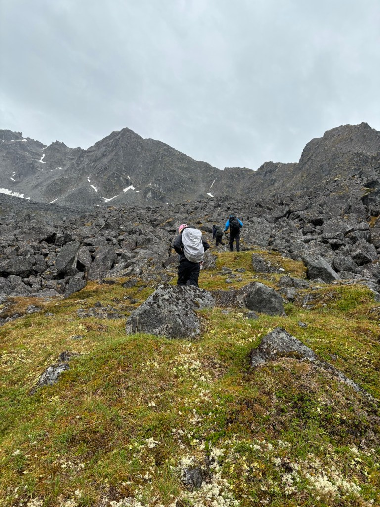 With the weather being so crumby, the guides decided that we would not pack up and move. Instead we would do day hikes around our area to explore. We had our packs on us though they weren’t packed with any gear. Instead, it had snacks, water and any additional layers we might have needed.