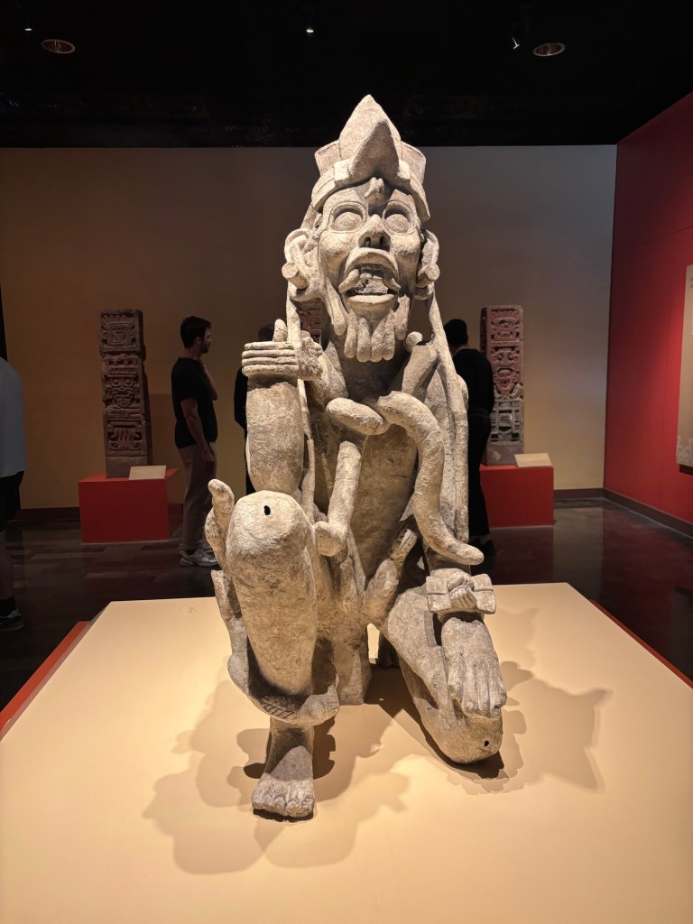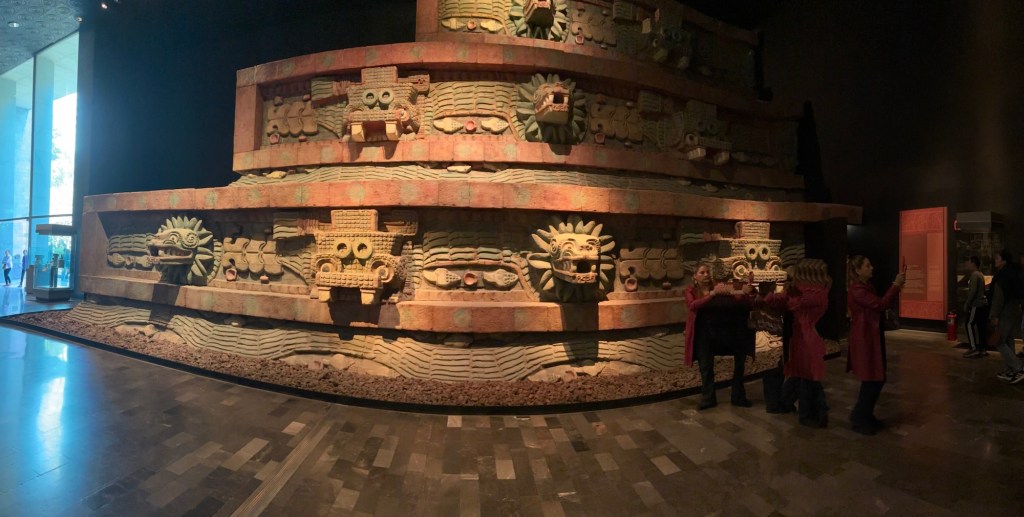 This is from exhibit 4 and a continuation of what we learned yesterday. The one thing I didn’t take a picture of was the Pyramid of the Feathered Serpent. This is a replication of what they assume it would look like and was mostly destroyed in real life though you can still see some of these characters on the destroyed pyramid.