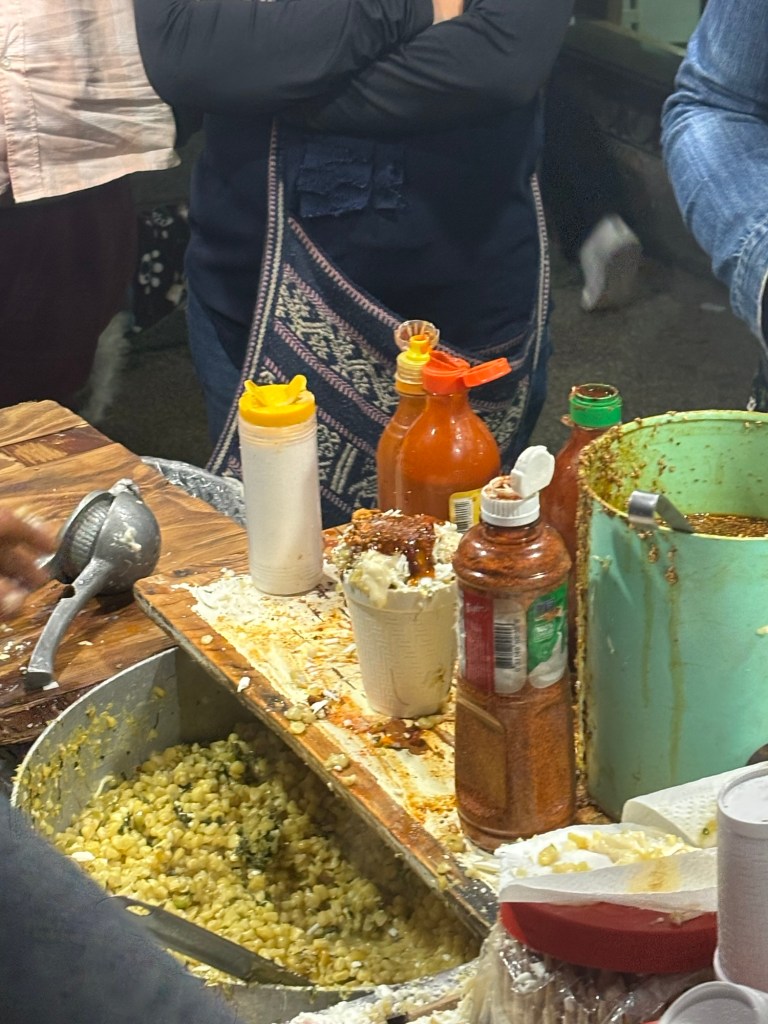 Next stop was street food of Mexican corn cup. As an Iowan, I fucking love corn but at this point I was full to the point of past stuffed (hence why pizza was a bad idea so now you know). JD and I shared one and didn’t even finish regardless of how great it was. Fun fact, we didn’t throw the food away. Instead our guide said that if you leave it on top of the trash, homeless folks will come and get the food and it wasn’t contaminated by other trash. I love this fact.