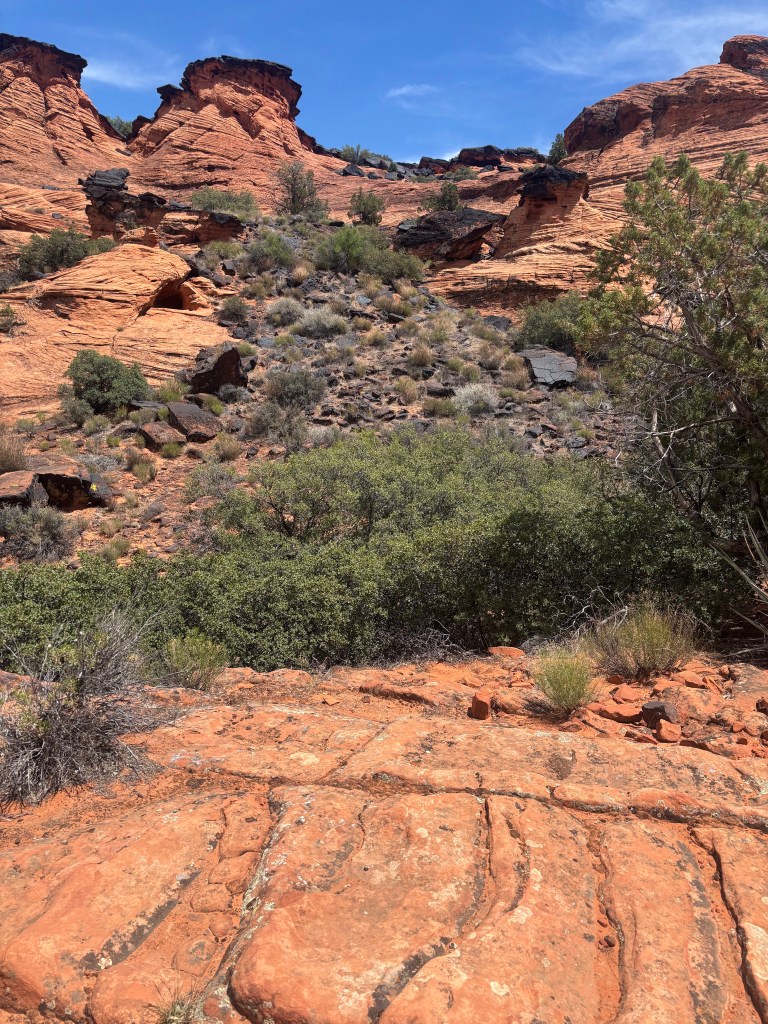 It’s sad to say that I’m heading home today. Not that I don’t want to see JD, the dogs, chickens and my fish. I just am not ready for real life yet. After laundry last night, I packed everything except the clothes I was wearing the next day. We both got up early even though we could technically sleep in. We did have a work meeting that was a town hall that we needed to attend. Though after that, we headed out for Snow Canyon to do one final hike before I flew out.