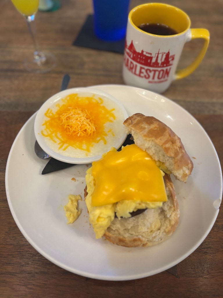 Since we did left over breakfast and dinner yesterday, we had zero food (we did have good breafast options), so we went to Toasy All Day for breakfast. This is the only place I took a picture of the food, and JD got a basic bitch breakfast with an oldy but goody…the classic breakfast and I had the breakfast biscut sandwich. I did take a picture of mine, the only picture of food I managed.