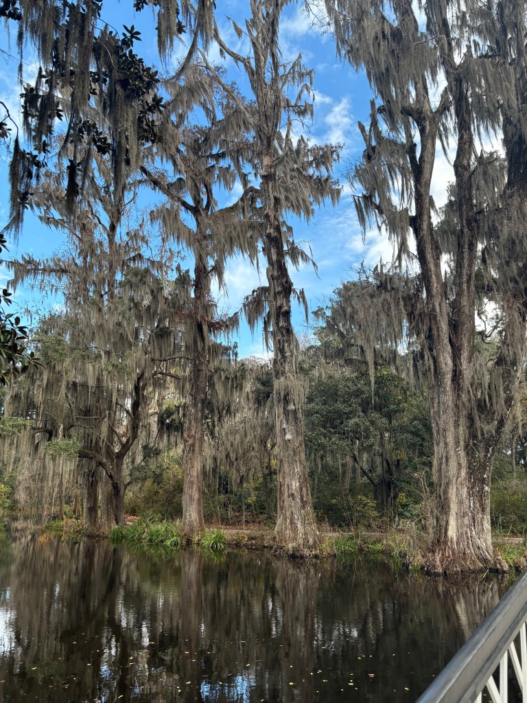 We had originally wanted to go to Middleton Place, but the house was closed for renovations and cost the same. We decided to go to the Magnolia Plantation, which did not disappoint. We bought all-inclusive tickets, which means we got the house tour, Slave to Freedom tour, and the Wildlife tour, as well as transportation to and from. Our driver to was Marine Mike. He was an ex-Marine vet and also a retired history teacher who was a transplant from New Jersey. He was an interesting short guide. When we got onto the plantation, we did a walkabout before we did the house, slave to freedom, and nature tour we had signed up for.